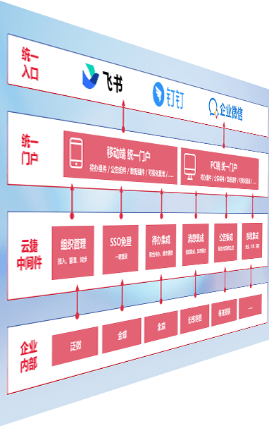 对协作平台提供支持服务,,支持企业应用与协作平台对接,,包含组织同步、、、消息集成、、、待办集成等。。。。支持目前主流的协作平台:钉钉、、、、企微和飞书。。。。